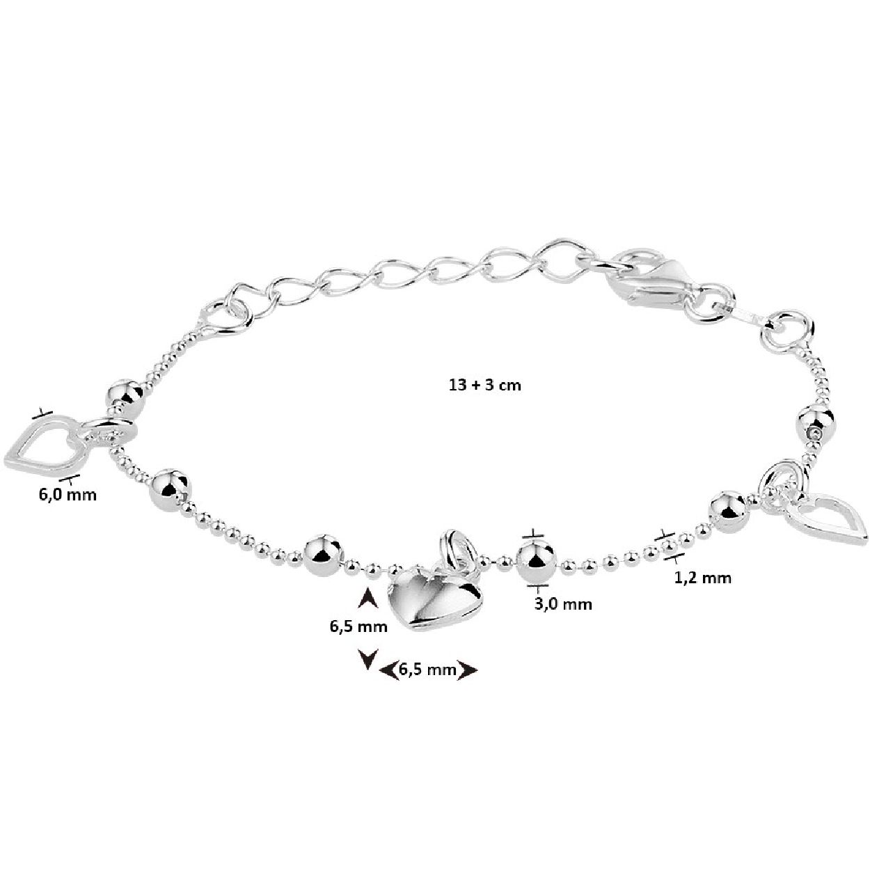 De armband is gemaakt van gerhodineerd zilver en is zilverkleurig. Het is een sieraad voor kinderen.