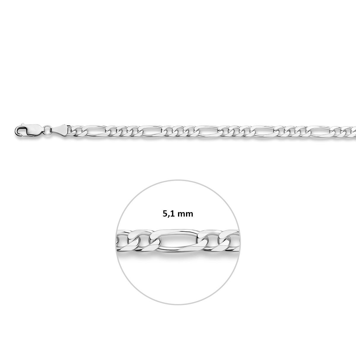 925 Zilveren lengte artikel met figaro schakel van 5,1mm. Hij sluit met een stevig karabijnslot.