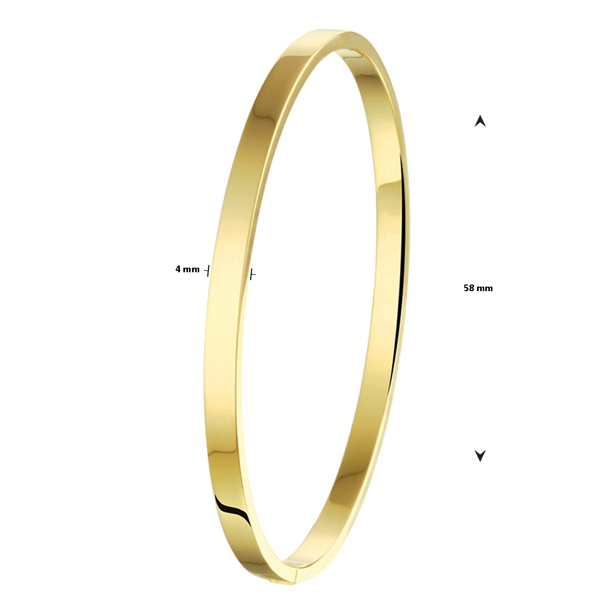 Sieraden van 14 karaat goud met daarin een kern van 925 zilver. Geelgouden bangle met scharnier-sluiting.