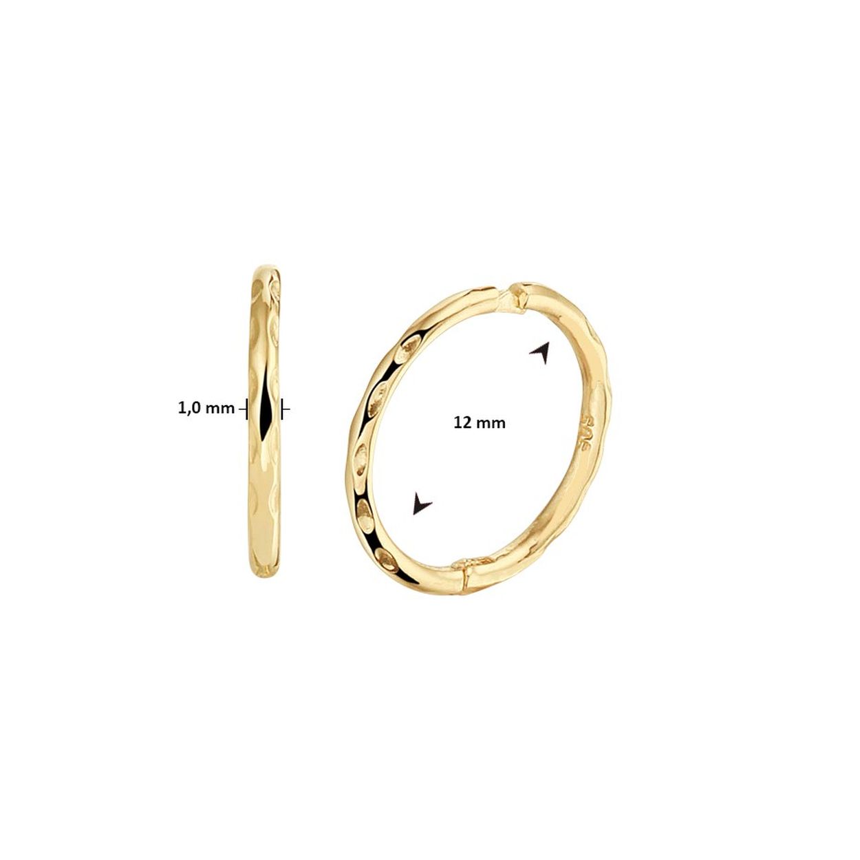 14k Geelgouden klapoorringen met een gediamanteerde afwerking. De oorringen hebben een afmeting van 12x1mm.