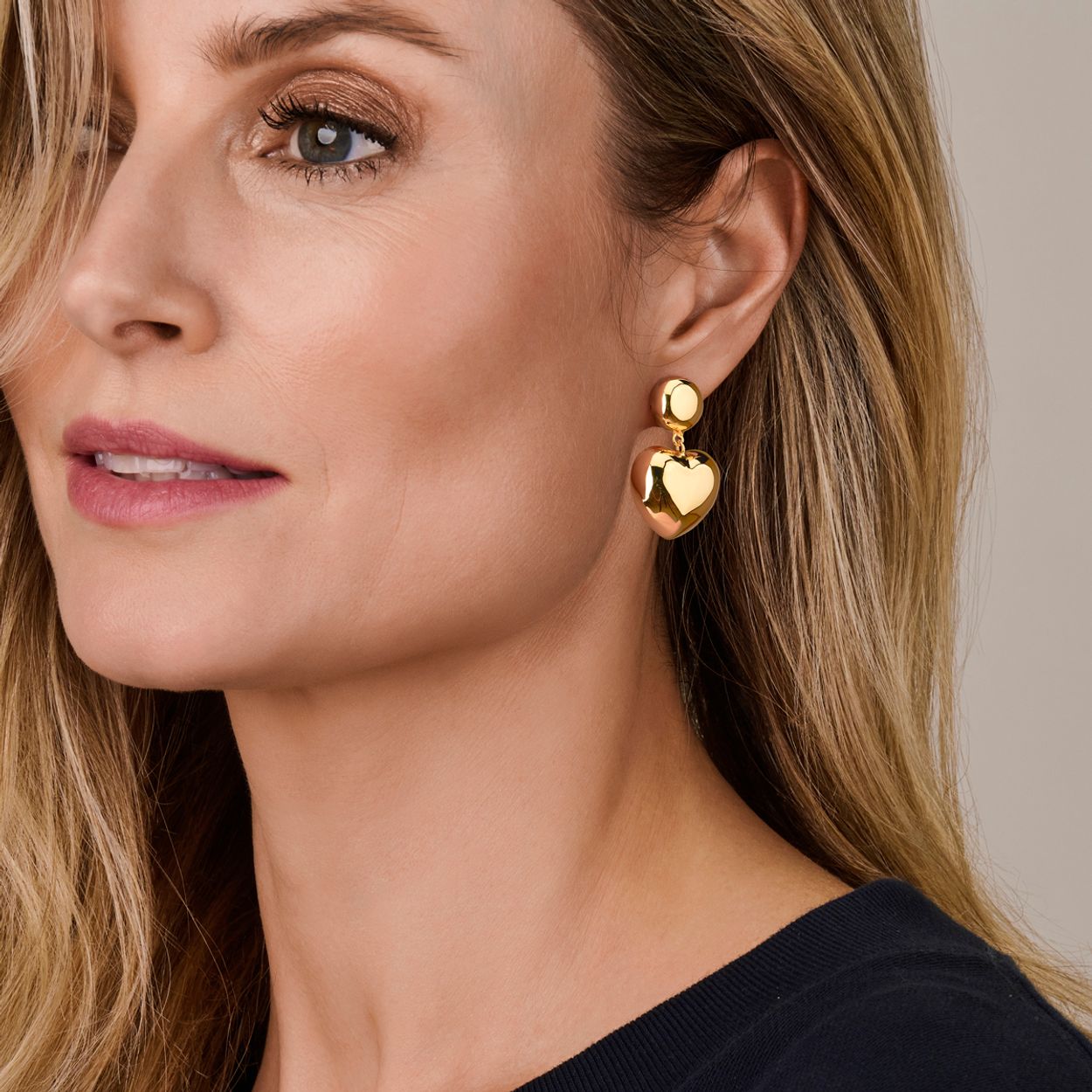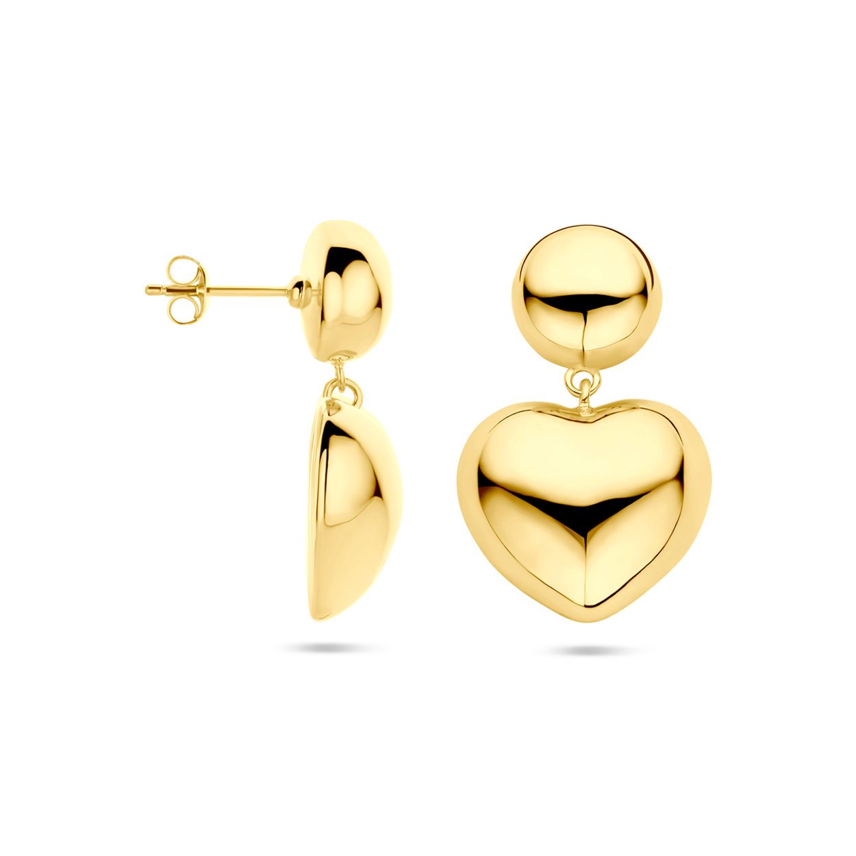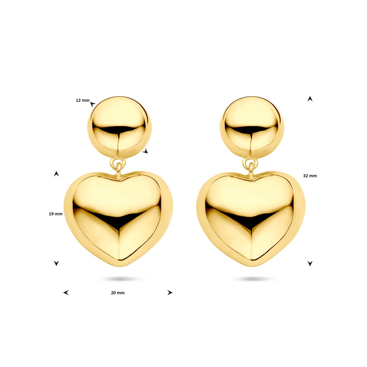 Geelgoud op 925 zilveren oorhangers uitgevoerd met een hartje. De oorhangers hebben een afmeting van 32x20mm. Geen garantie op de plating.