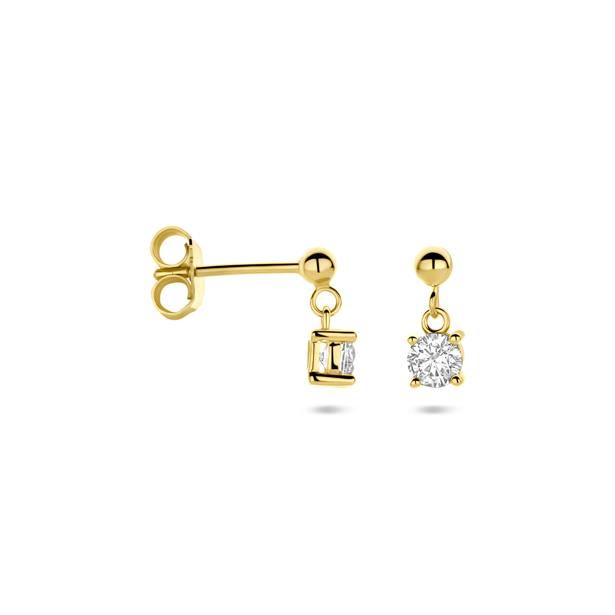 Verguld op 925 zilveren oorhangers uitgevoerd met zirkonia. De oorhangers hebben een totale hoogte van 11mm. Geen garantie op plating.