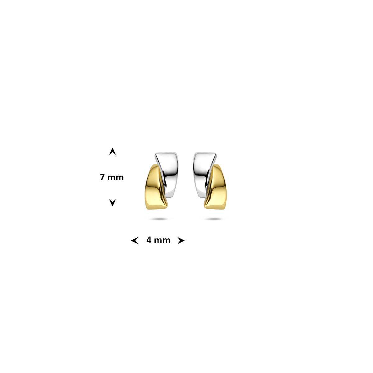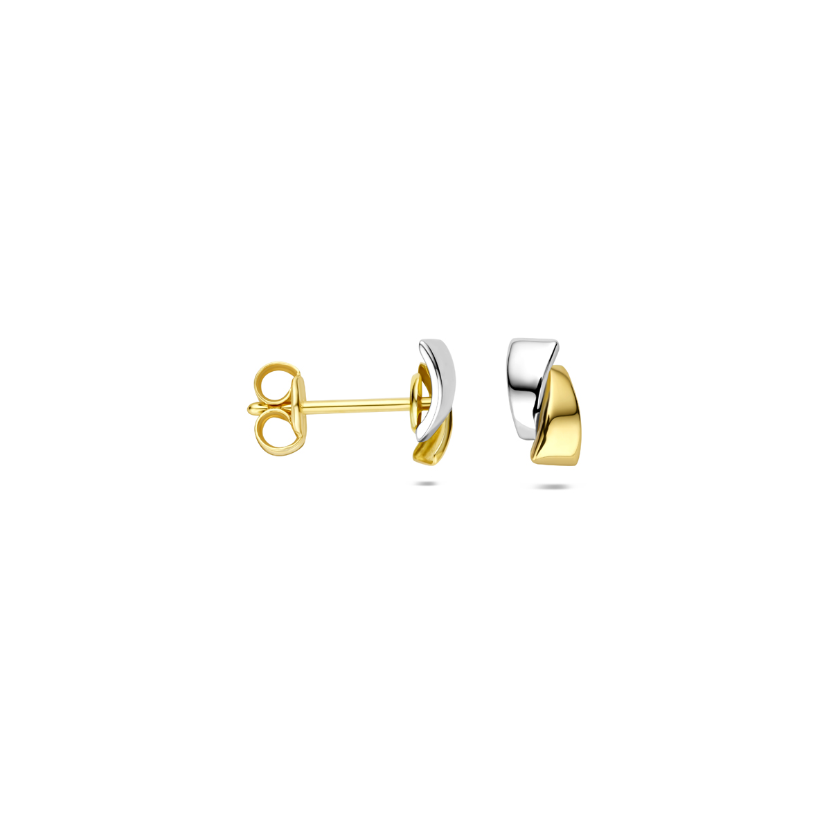 Bicolor wit- en geelgouden oorknoppen met een poli afwerking.