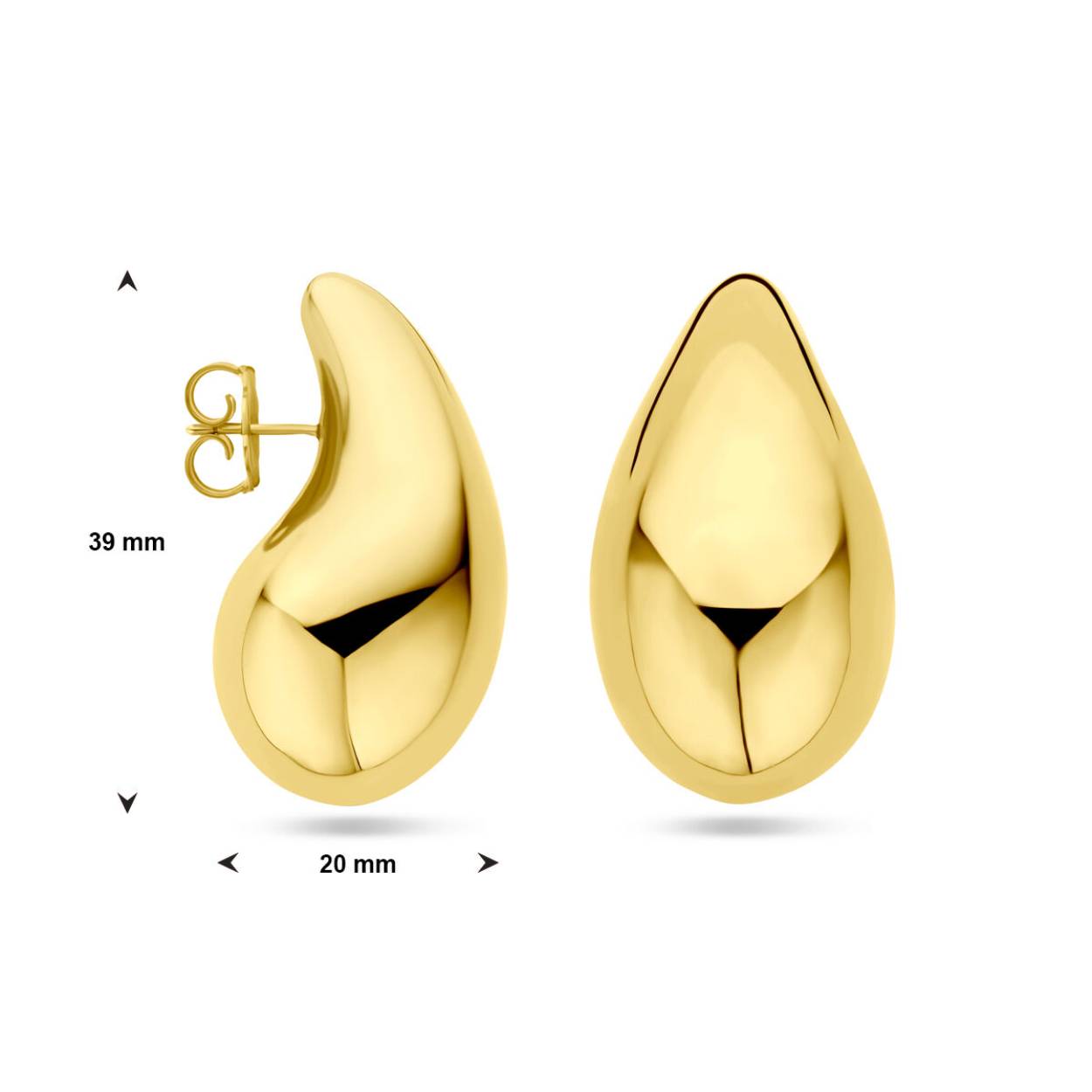 Geelgoud op 925 zilveren oorknoppen in de vorm van een druppel. De oorknoppen hebben een afmeting van 39mm.