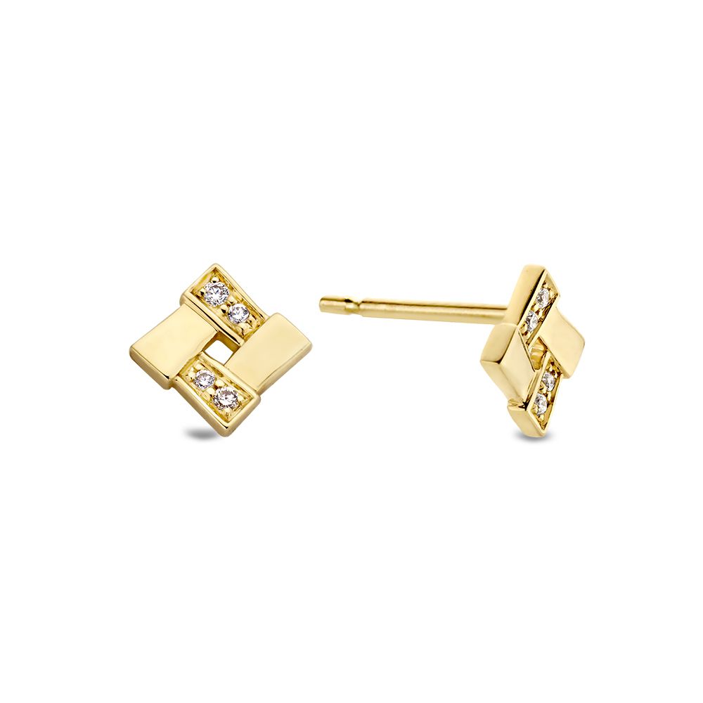 Geelgouden oorstekers met diamant.