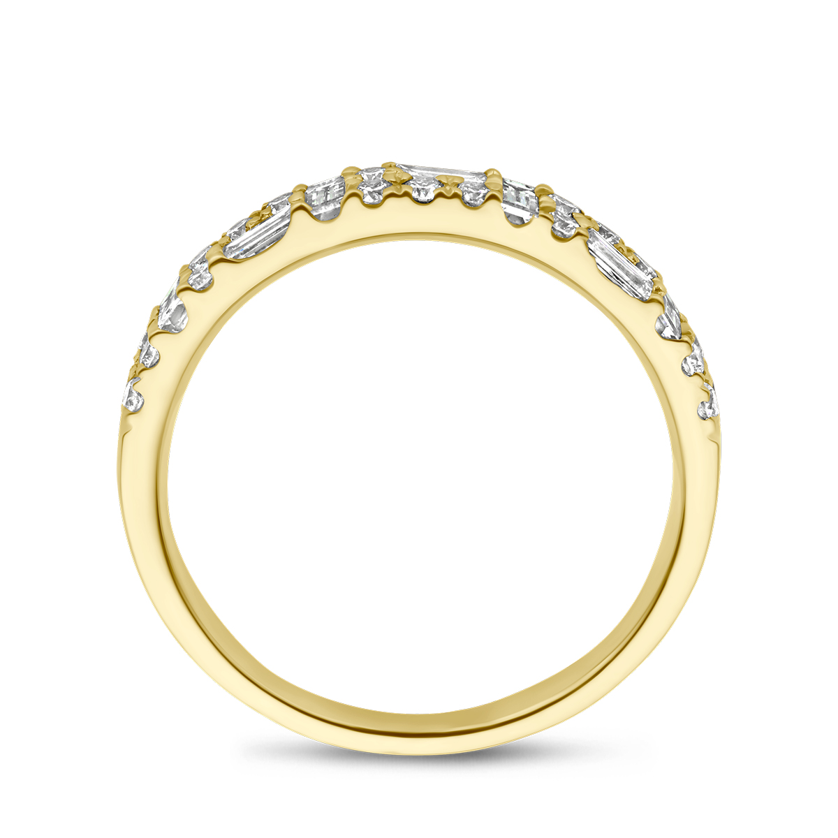 14k Geelgouden ring uitgevoerd met schitterende diamant. De ring heeft een breedte van 3.5mm. Het diamantgewicht is 0.61ct.